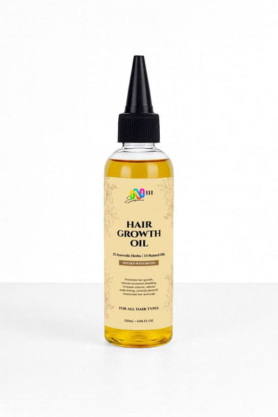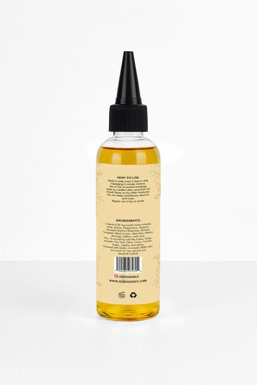 Transform your hair care routine with our powerful Ayurvedic Hair Growth Oil, expertly crafted with a rich blend of 25 herbs and 15 natural oils imported from India. This biotin-infused formula works to strengthen your hair, reduce breakage, and support healthy, natural growth from the scalp. Enriched with ingredients like castor oil, rosemary, fenugreek, hibiscus, and more, it nourishes the scalp and hair follicles to promote thicker, more resilient hair. Lightweight and fast-absorbing, it leaves no greasy residue—just pure, concentrated nourishment for visibly healthier, stronger hair. Free from parabens, mineral oil, and unnecessary fillers, this versatile oil is suitable for all hair types and colors.